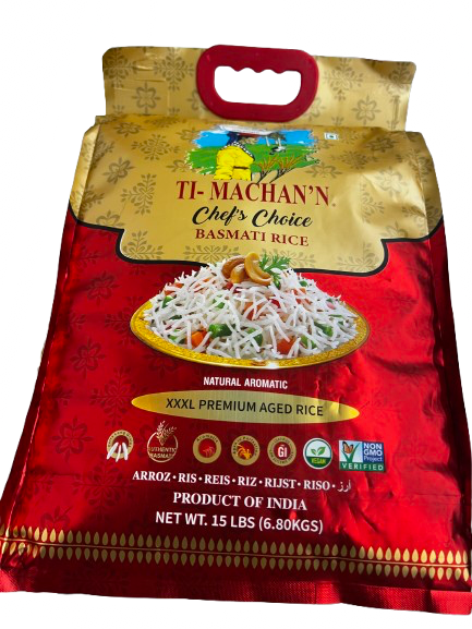 Ti-Machan'n Chef's Choice - Basmati Rice - 15 Lbs | Premium Aromatic Long Grain Indian Rice, Non-GMO